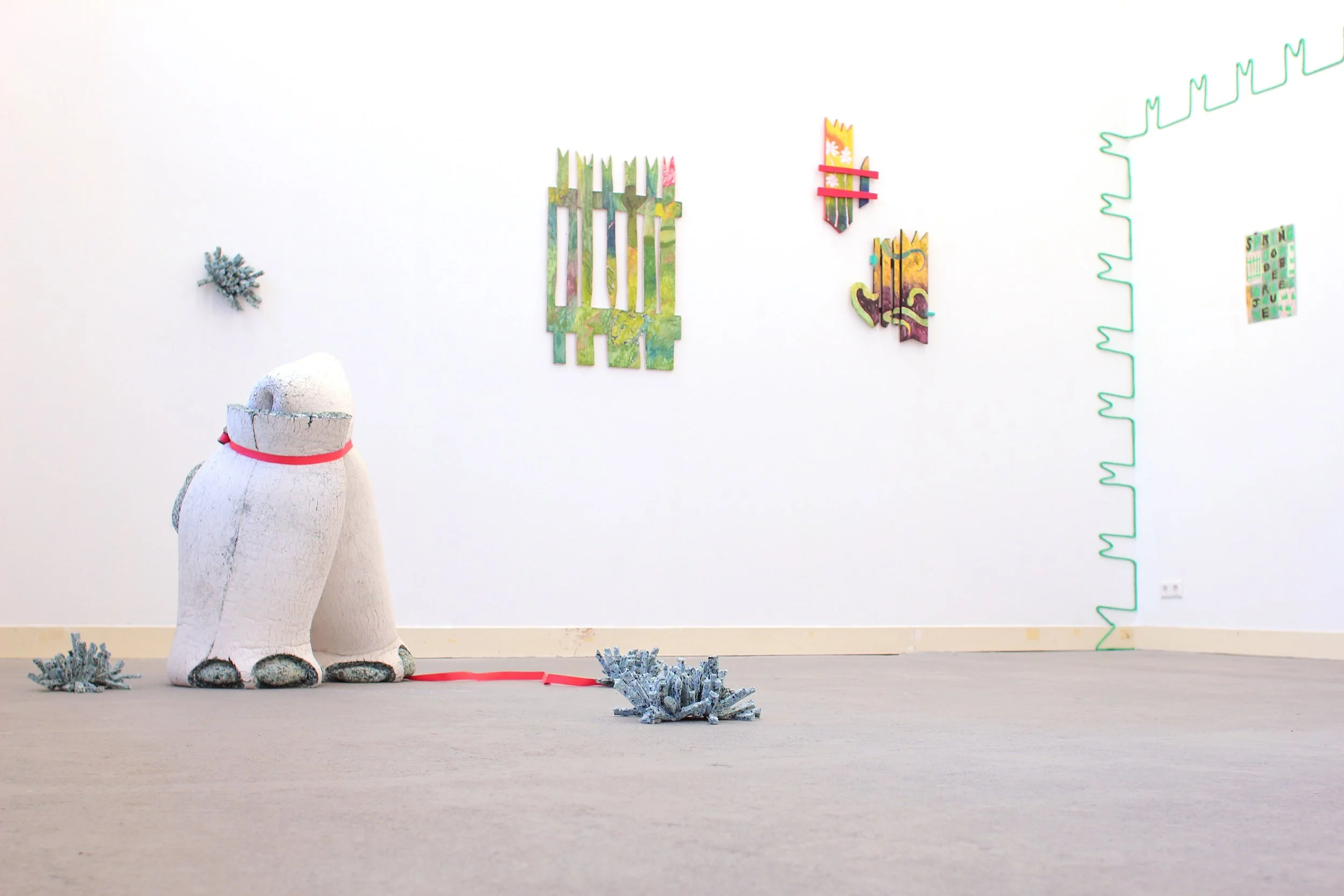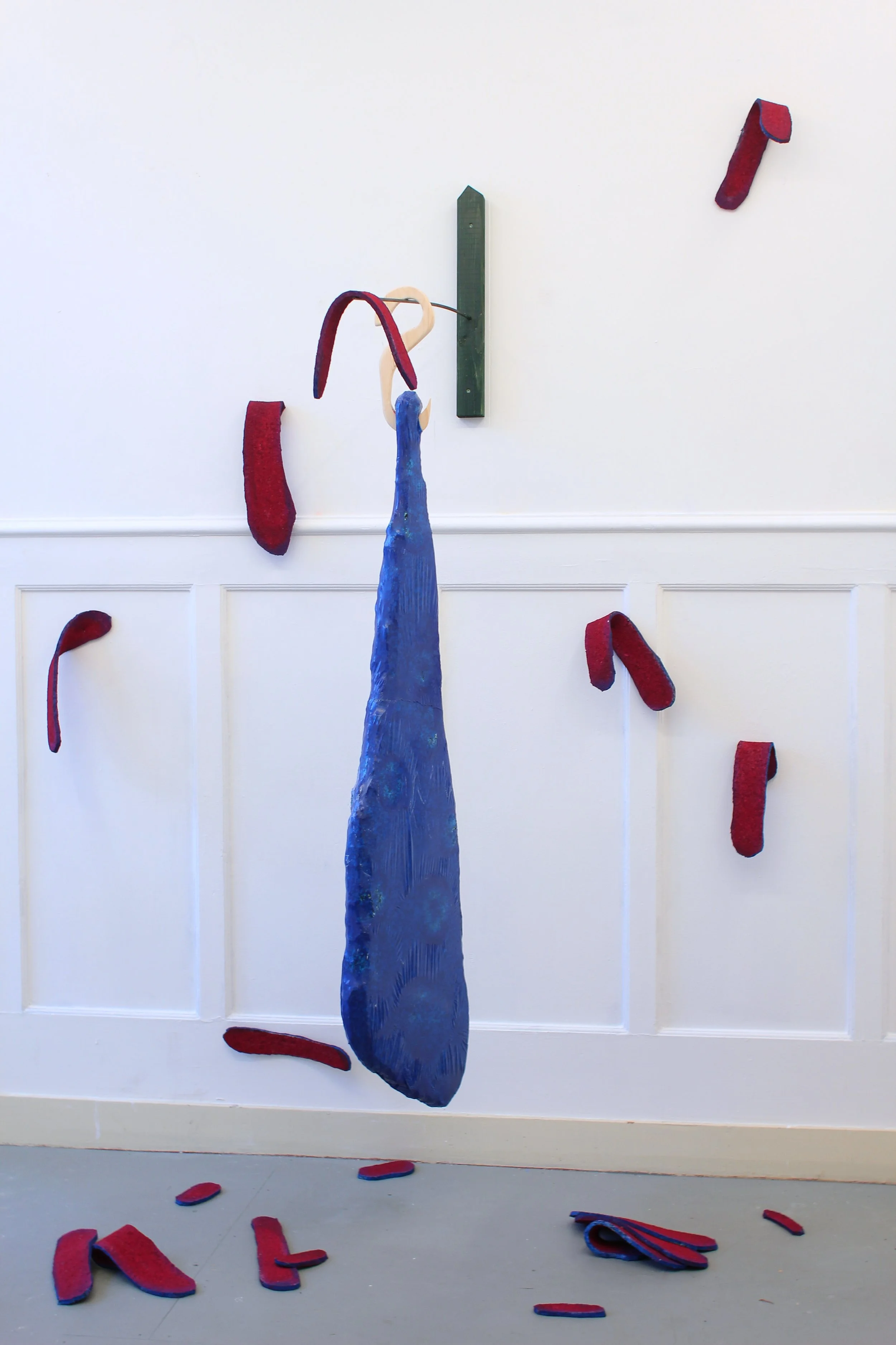 The exhibition is as an opportunity to explore new ways that my works can interact with each other and the spaces in which they are placed. Every space holds in it idiosyncrasies which can be adorned. The installation is an act of world-building where I can experiment with objects and materials in ways that individual artworks are not able to exist.